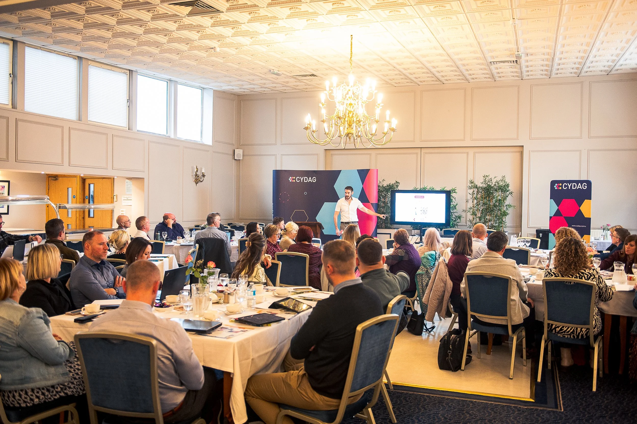 ‘Y Negeseuon Diweddaraf o’r Byd Addysg Gynradd’ oedd thema ein cynhadledd ar gyfer y sector cynradd yn Aberystwyth eleni. Dechreuodd y gynhadledd gyda chroeso gan Brif Weithredwr CYDAG, Dr Gwennan Schiavone a’r Arweinydd Cynradd, Rhodri Gwyn Jones. Y siaradwr cyntaf oedd Alun Jones, Pennaeth Tîm Gwella Addysg Llywodraeth Cymru. Rhoddodd Alun gyflwyniad ar weledigaeth y Llywodraeth ar sut all Awdurdodau Lleol ac ysgolion gyd-weithio er mwyn sicrhau gwella parhaus. Nesaf, rhoddodd Trystan Williams, Cydlynydd Cenedlaethol ADY, ddiweddariad ar yr hyn oedd yn digwydd yn genedlaethol yn y maes ADY a’r Gymraeg. Wedi paned, rhoddodd Emyr George, Prif Weithredwr Adnodd, gyflwyniad am y gwaith maen nhw’n ei wneud i greu a chomisiynu adnoddau ar gyfer ysgolion. Y siaradwr olaf cyn cinio oedd Meurig Jones, Dirprwy prif weithredwr Dysgu. Rhannodd Meurig wybodaeth am y corff dysgu proffesiynol cenedlaethol newydd a rhoddodd gyfle i’r mynychwyr roi mewnbwn i’r anghenion datblygiad proffesiynol sydd yn y sector er mwyn llywio cyfeiriad Dysgu.